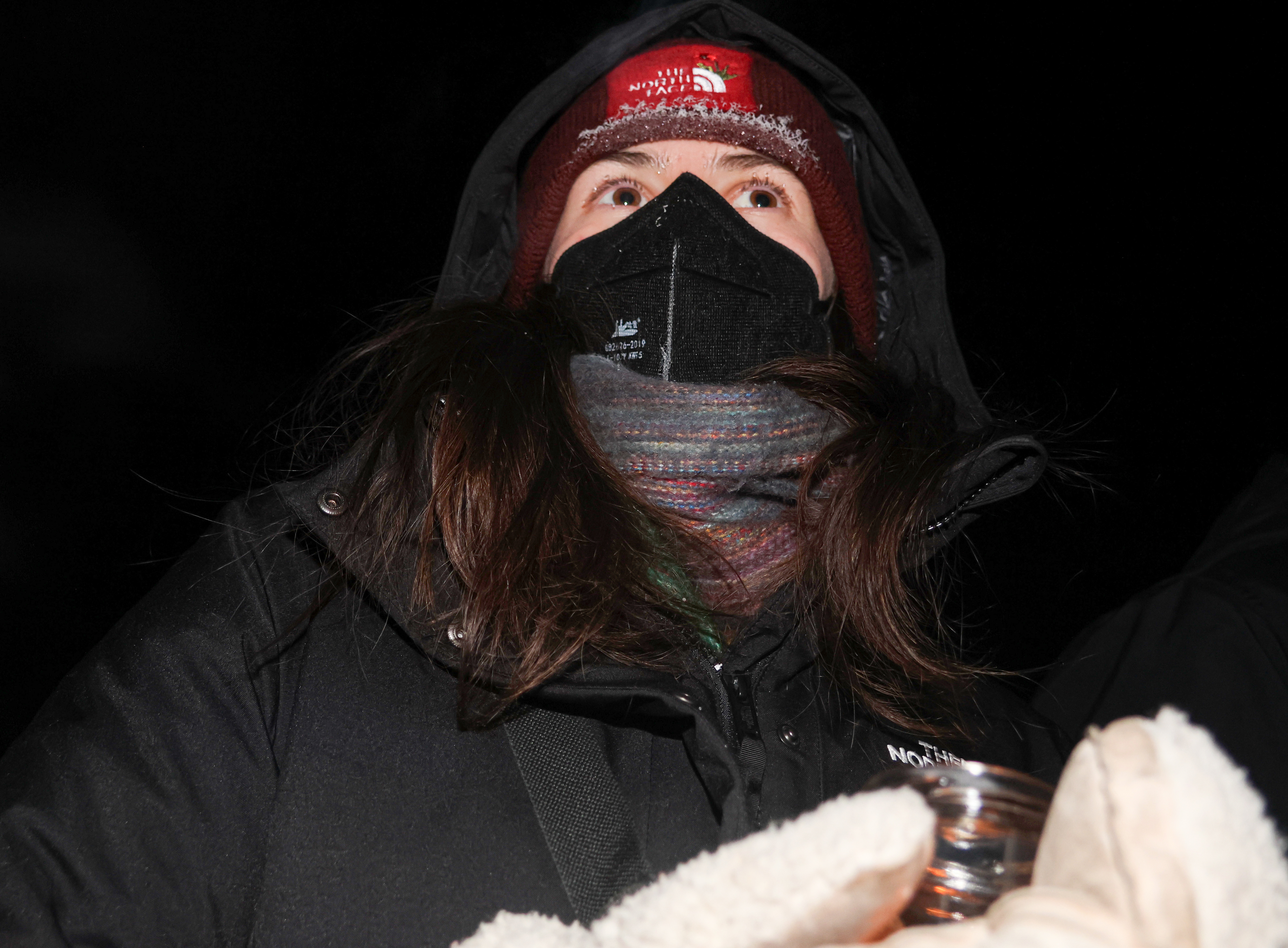 Dozens of community members gather outside the Afghan Cultural Society on Monday, Dec. 8, 2025 in Minneapolis’ Cedar Riverside neighborhood.